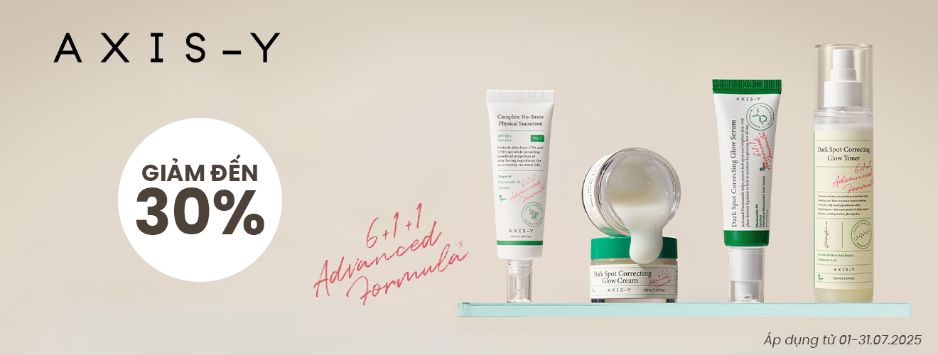 Tại Hasaki, Axis-Y nổi bật với các sản phẩm như Dark Spot Correcting Glow Serum và Complete No-Stress Physical Sunscreen. Serum chứa 5% Niacinamide, Squalane và chiết xuất từ cây hắc mai biển, giúp làm sáng da, giảm thâm nám và cải thiện độ mịn màng. Sản phẩm có kết cấu nhẹ, thẩm thấu nhanh, phù hợp cho cả da nhạy cảm. Kem chống nắng vật lý với SPF 50+ PA++++, chứa ngải cứu và Niacinamide, không chỉ bảo vệ da khỏi tia UV mà còn nuôi dưỡng, làm dịu da, không để lại vệt trắng. Cả hai sản phẩm đều được yêu thích nhờ hiệu quả được chứng minh lâm sàng và công thức dịu nhẹ.